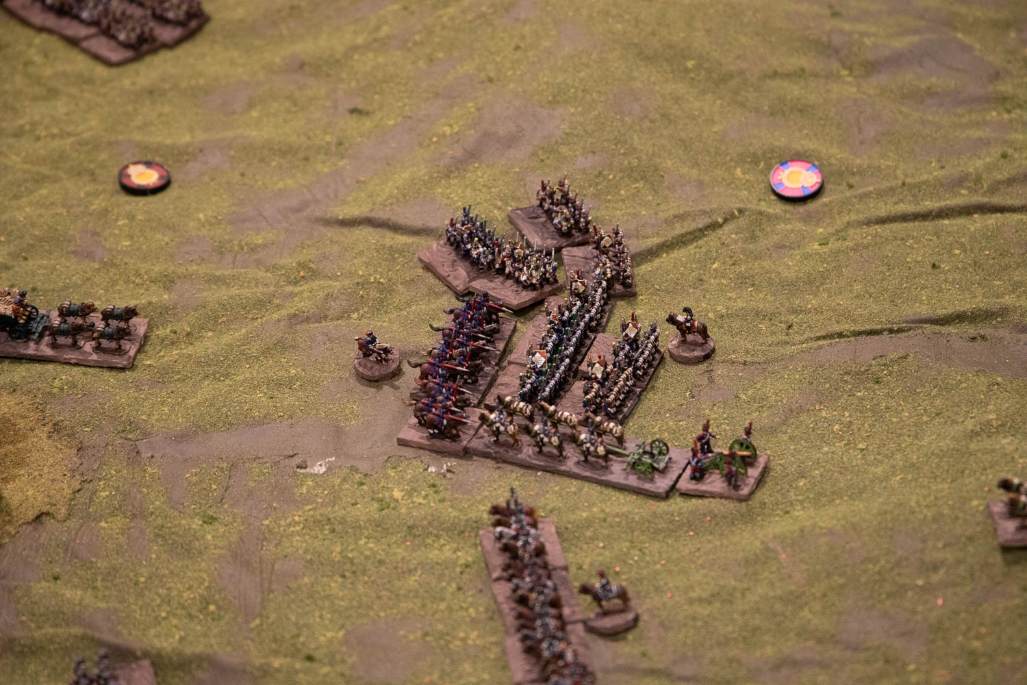 Dokhturov began the game by seeking to concentrate about a half mile forward of his crossing point but while his cossack brigade complied promptly, there were delays getting his right wing moving. Ultimately the timing of this helped him, allowing the Russians to counter the French directly.